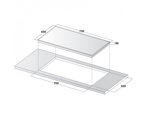 - Kích thước khoét đá: 700x330mm