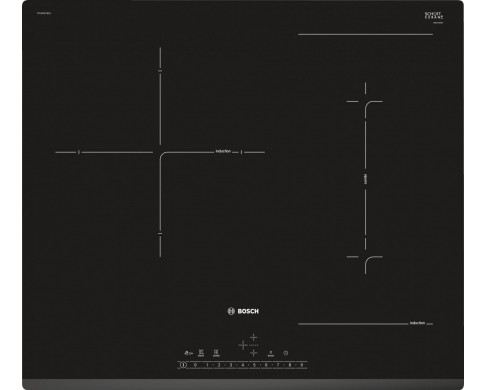 Bếp từ Bosch HMH.PVJ611FB5E 3 vùng nấu cảm ứng từ . Tự nhận diện nồi chảo . Chức năng bếp từ kết hợp vùng nấu sử dụng nồi/ đĩa nướng hình chữ nhật hoặc kích thước lớn trên 2 vùng nấu kết hợp