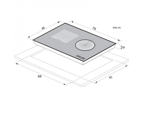 • Kích thước bếp (D x R x C): 75 x 45 x 5,5 cm
