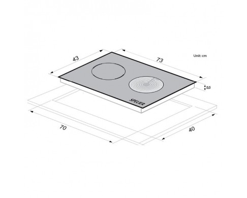 • Kích thước bếp (D x R x C): 73 x 43 x 5,5 cm