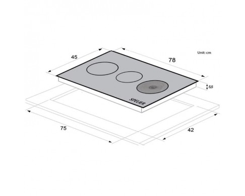 • Kích thước bếp (D x R x C): 78 x 45 x 5,5 cm