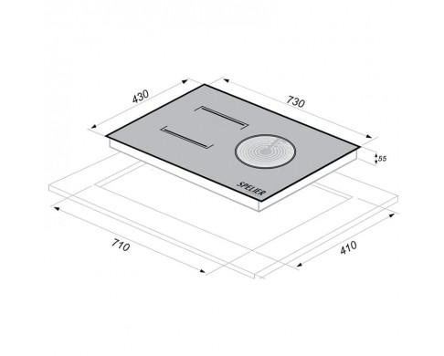 • Kích thước bếp: 730 x 430 x 55mm (Dài x Rộng x Cao)