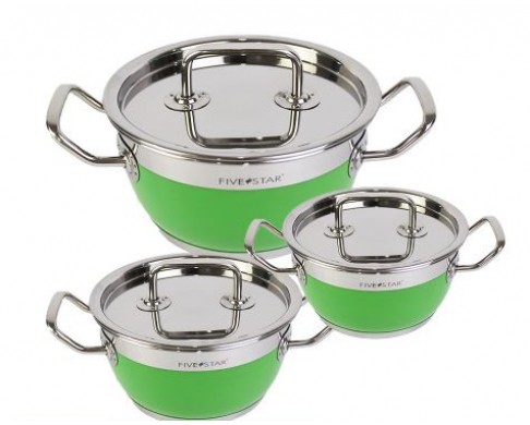 Bộ nồi màu inox 3 đáy Fivestar FS06-3DX làm bằng inox 430 sáng bóng, bền đẹp vừa giúp tiện lợi trong chế biến thức ăn, vừa giúp trang trí cho gian bếp nhà bạn thêm sang trọng. Bộ nồi Fivestar 3 chiếc màu rất an toàn với sức khỏe của gia đình bạn, không gây phản ứng hóa học khi nấu ăn.