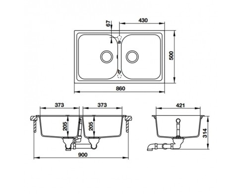 | Kích thước mỗi bồn: 373D x 421R mm / 373D x 421R mm | |
