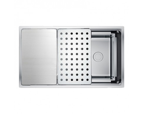 - Dòng chậu hạ bậc - tích hợp công năng: thớt gỗ, rollmat, colander, bottom grid, chậu rửa nhỏ
