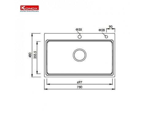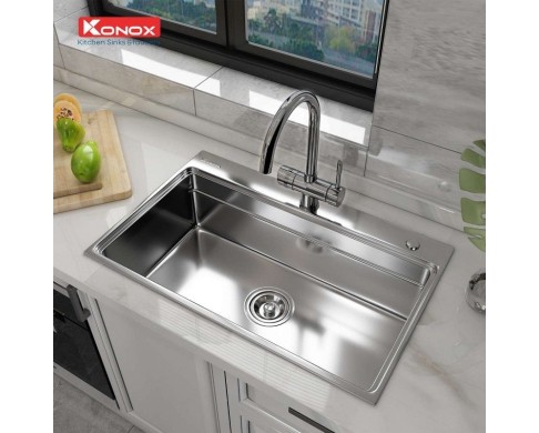 Chậu rửa bát Model KN7548SO – Dòng sản phẩm chậu đơn hố duy nhất trong bộ sưu tập Overmount Series của Konox – dòng sản phẩm hướng tới phân khúc trung cấp của thị trường và vẫn được sử dụng toàn bộ chất liệu cao cấp.