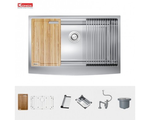 Workstation – Apron Sinks (hay còn gọi Farmhouse sinks) – dòng sản phẩm được Konox lấy cảm hứng, phát triển từ căn bếp nông trại nơi miền quê yên bình của Pháp, Ý, Anh,…- gian bếp là trái tim của ngôi nhà phong cách đồng quê.