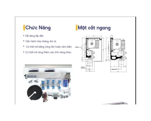 Cửa được tối ưu hóa về cấu trúc cơ khí, hỗ trợ kỹ thuật viên lắp đặt nhanh chóng và chính xác. Hệ thống ray trượt và nắp che được thiết kế đồng bộ, giúp che giấu toàn bộ linh kiện bên trong, mang lại tổng thể gọn gàng, hiện đại và chuyên nghiệp.
