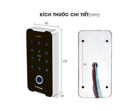 - Dung lượng lưu trữ: 100 mật mã, 100 thẻ từ, 100 dấu vân tay