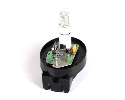 - Đấu nối: Kết nối dây nguồn của đèn vào cổng tín hiệu (Lamp) trên board mạch điều khiển motor cổng (thông thường là nguồn 220V).