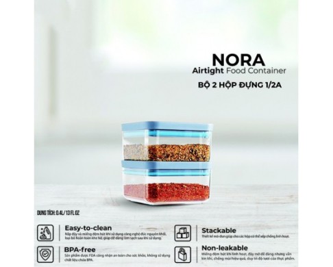 Nora 1/2A: Bộ 2 hộp nhỏ, dung tích 0.4L/hộp, kích thước: 10x11x5.5