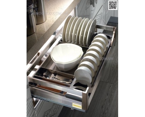 Giá bát đĩa inox nan âm tủ gắn cánh ray giảm chấn
