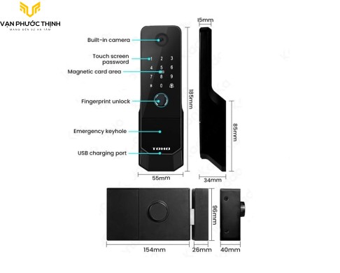 - Dung lượng lưu trữ 100 Vân tay, 100 Mật mã, 100 Thẻ từ