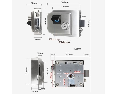- Vận hành: bằng: mật mã 30, 100 Vân tay 2 chiều, 500 thẻ từ, chìa khóa cơ 3, remote 30, app Tuya wifi Mật mã 30, Remote 5