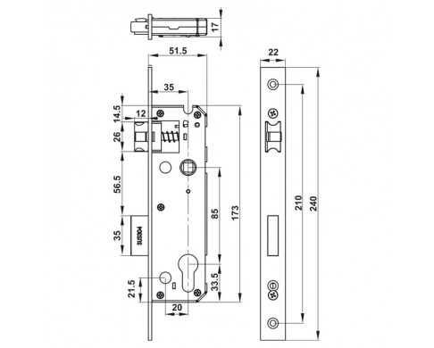 Chất liệu: Thân khóa theo tiêu chuẩn Châu Âu, Backset 60mm