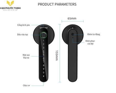 - Dung lượng lưu trữ: 100 Vân tay, 100 Mật mã, 100 Thẻ từ