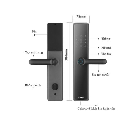 - Khóa vân tay cho cửa gỗ TOHO TH631