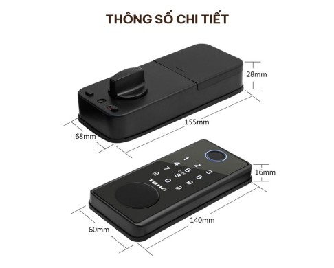 - Lưu trữ: 100 vân tay, 100 mật mã, 100 thẻ từ, 3 chìa cơ