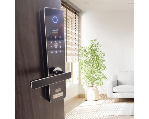 - Khóa 5 chức năng : Vân tay cảm ứng nhiệt, mã số, thẻ từ, App điện thoại, chìa cơ