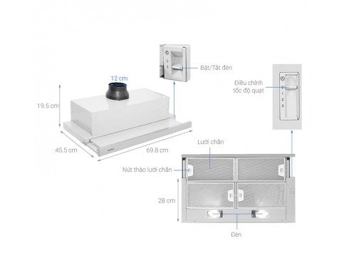 Mẫu máy hút và khử mùi nhà bếp, lắp đặt âm tủ bếp, kích thước 700mm