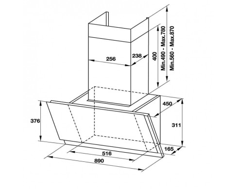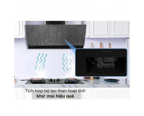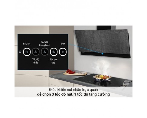 - Máy hút mùi lắp đặt áp tường hoặc tủ bếp kích thước 900mm