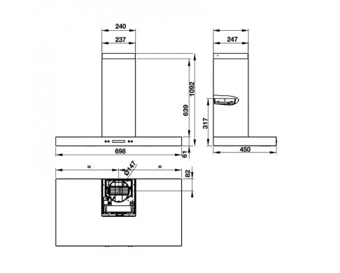 Mẫu máy hút mùi thẳng , lắp đặt áp tường hoặc áp tủ bếp kích thước 700mm