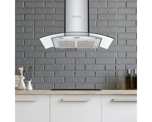 Máy hút mùi Spelier SP-654G sử dụng bảng điều khiển phím bấm điện tử gồm 3 tốc độ hút phù hợp với lượng mùi và khói khi nấu ăn để đảm bảo sạch mùi cho không gian bếp nhà bạn. Hệ thống đèn chiếu sáng của máy gồm 2 đèn led có tác dụng chiếu sáng và làm cho công việc nấu ăn thêm thuận lợi. Lưới lọc mỡ bằng hợp kim gồm nhiều lớp để ngăn chặn triệt để mùi, bụi lọt vào bên trong máy gây hỏng động cơ. Tấm lưới này có thể tháo rời để vệ sinh một cách dễ dàng.