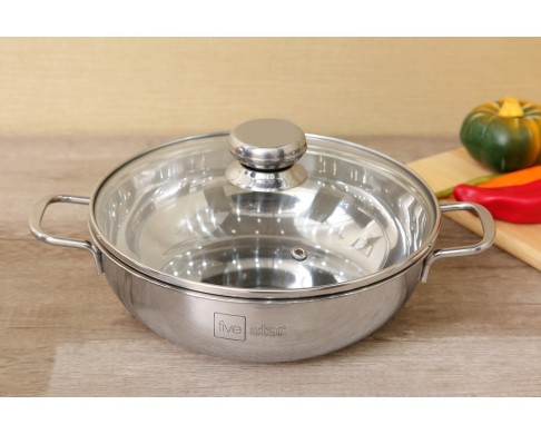 Nồi lẩu um xào inox 430 bếp từ 3 đáy Fivestar nắp kính