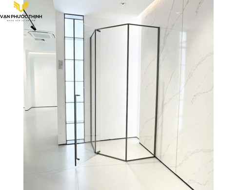 - Điểm nổi bật: Khung Inox 304 siêu mỏng (Slim), góc mở 135 độ tiết kiệm không gian, kính cường lực 8mm an toàn.