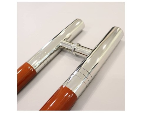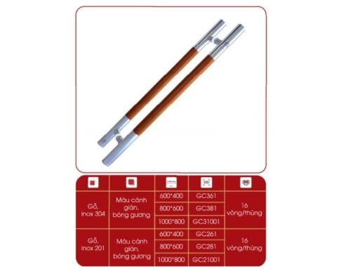 - Kiểu dáng: Tay nắm thân bằng gỗ với 2 đầu inox