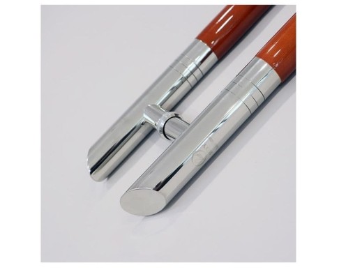 Cấu tạo: Phần thân gỗ được liên kết hai đầu inox thiết kế vát 2 đầu bằng loại keo dính chuyên dụng hai thành phần. Sự liên kết này tạo độ chắc chắn cho sản phẩm khi sử dụng chốt ren 8. Chân ống thì được gắn kết bằng 3 ốc chí để tăng mức độ chịu lực và độ bền cho sản phẩm.