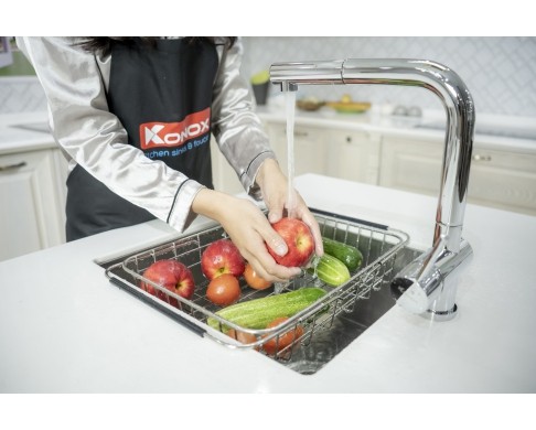 Thân vòi xoay linh hoạt 360 độ với cơ cấu khớp xoay mượt mà nhờ kết nối thân đồng tiêu chuẩn. Konox trang bị đồng bộ định hướng dòng chảy từ thương hiệu số 1 về giải pháp phụ kiện vòi nước tại Thụy Sĩ giúp tiết kiệm nước đồng thời tạo bọt khí chống bắn nước mang lại trải nghiệm tuyệt vời cho người dùng.