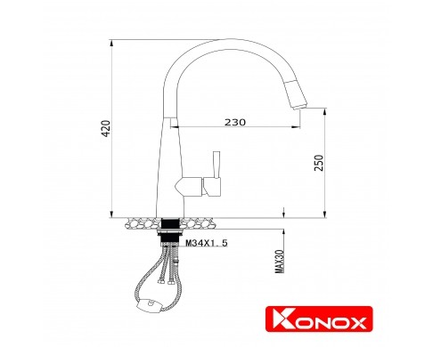 Thân vòi xoay linh hoạt 360 độ với cơ cấu khớp xoay mượt mà nhờ kết nối thân đồng tiêu chuẩn. Konox trang bị đồng bộ định hướng dòng chảy từ thương hiệu số 1 về giải pháp phụ kiện vòi nước tại Thụy Sĩ giúp tiết kiệm nước đồng thời tạo bọt khí chống bắn nước mang lại trải nghiệm tuyệt vời cho người dùng.