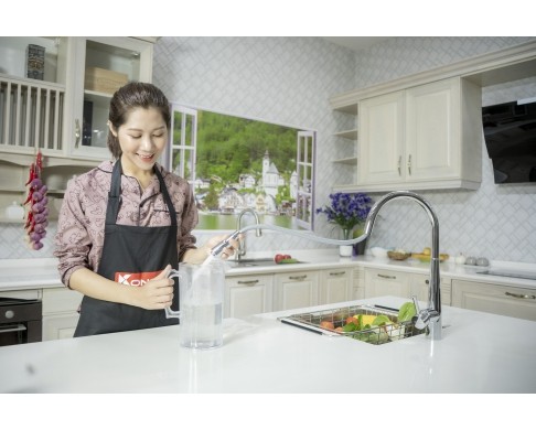 Thiết kế vòi KN1901C mang phong cách sang trọng tạo điểm nhấn trong không gian nhà bếp, Sự đơn giản trong thiết kế chi tiết thân vòi tạo cảm giác nhẹ nhàng phù hợp với mọi không gian nhà bếp. Vòi có chức năng 02 đường nước nóng lạnh riêng biệt đáp ứng nhu cầu của một vòi nước hiện đại.