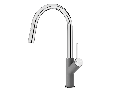 – Hình dáng: Vòi thiết kế bo tròn, đầu vòi cong. Một tay vòi nằm ngang
